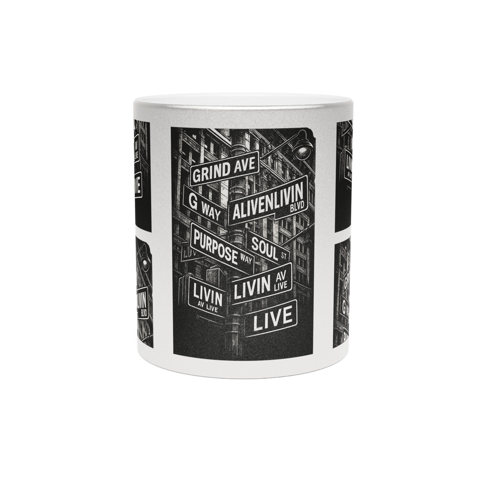 Metallic Inspirational Mug - Urban Life Design, Coffee Cup for Motivation, Gift for Dreamers, Creative Souls, Home or Office Decor